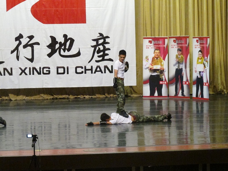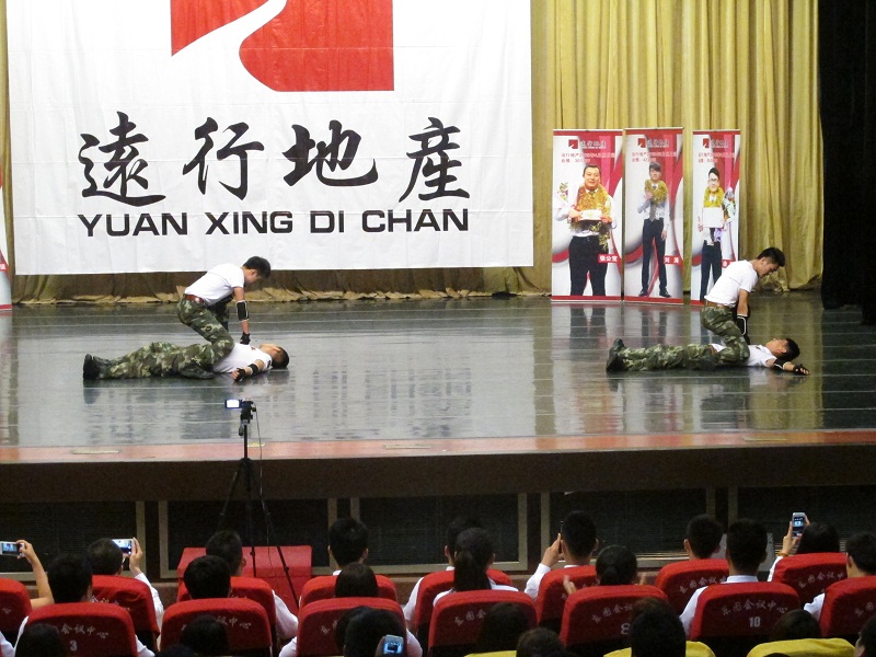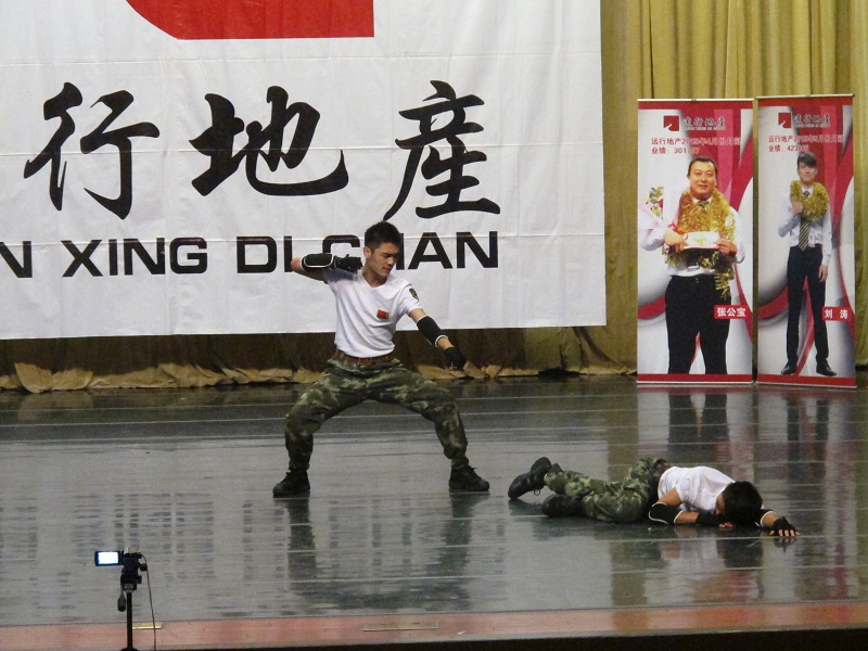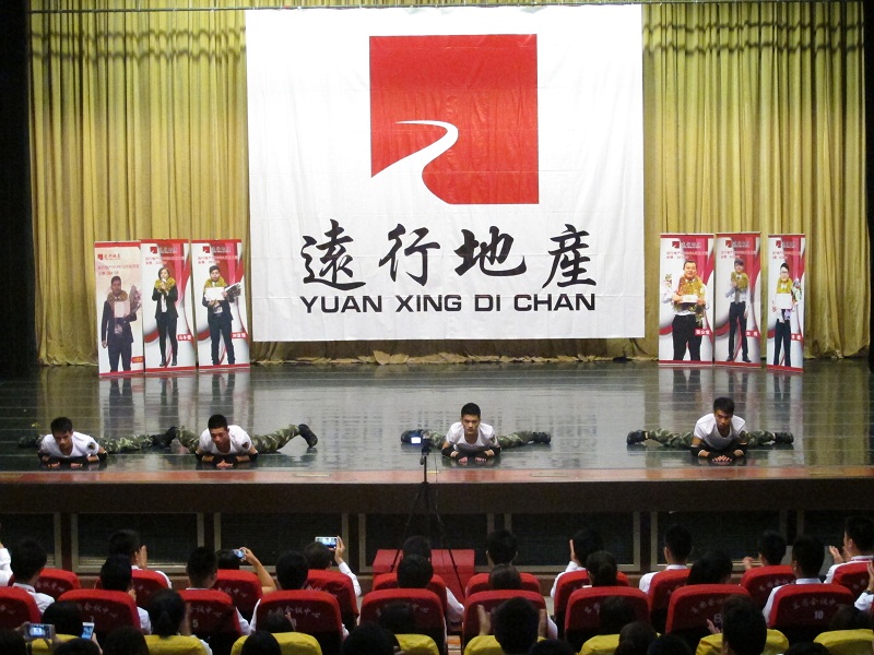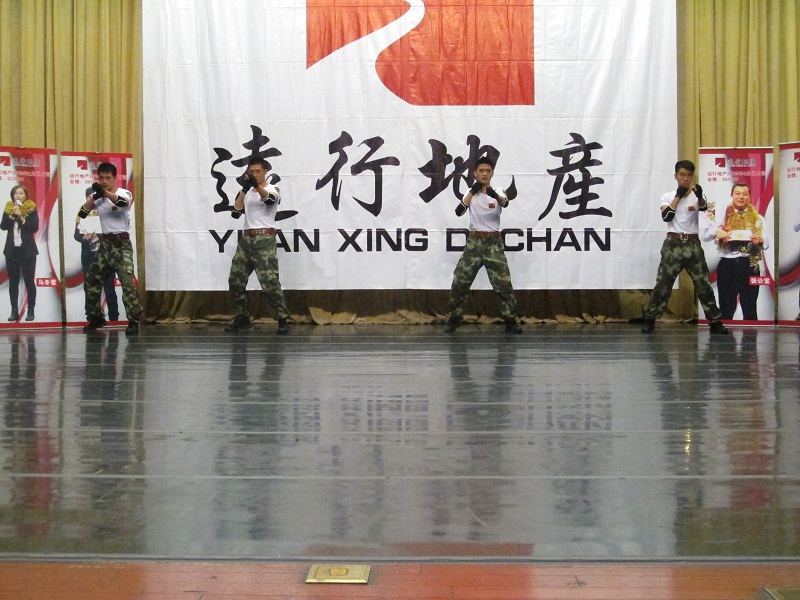 他們是尹華龍、李達(dá)、孟科、范沈杰,他們來自于銀河店,他們是來自部隊的軍人。他們在月會前一天的晚上趕到現(xiàn)場彩排,為了自己《擒拿拳》的節(jié)目,排練到晚上11點,為了達(dá)到自己心目中的最好效果,一聲又一聲的吼聲,一次又一次的重復(fù)動作,摔、打、踢、撲,他們用部隊的標(biāo)準(zhǔn)來定位節(jié)目,他們用軍人的要求來衡量自己。當(dāng)你看到他們手肘、膝蓋全是傷,晚上又冒著雨回家的背景,你應(yīng)該會肅然起敬;當(dāng)你第二天看到他們傷口裂開,拿著整瓶云南白藥蓋到冒血的傷口上時,你必然會對他們欽佩,還會有一些心疼!這就是遠(yuǎn)行的軍人,這就是遠(yuǎn)行的脊梁!謝謝這些90后愿意把自己的青春和夢想都放在遠(yuǎn)行來實現(xiàn)!伙伴們,我們又多了一份責(zé)任!