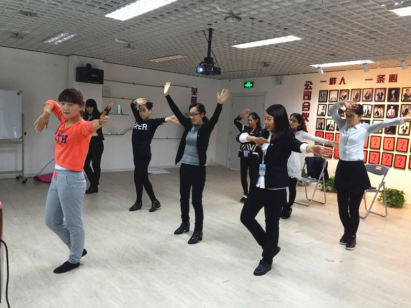 撩袖、擺袖、掏甩袖,一顰一笑盡顯異域風格!伴隨著李慧同學精彩的舞蹈教學和藏族特色鏗鏘的音樂,參與課程的伙伴們把藏族舞特有的民族風情展現得淋漓盡致!第一事業部總經理楊總也被吸引了過來,和伙伴們一起學一起鬧,歡樂和喜悅充滿了整個舞蹈教室。