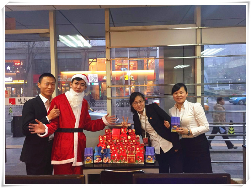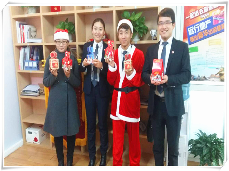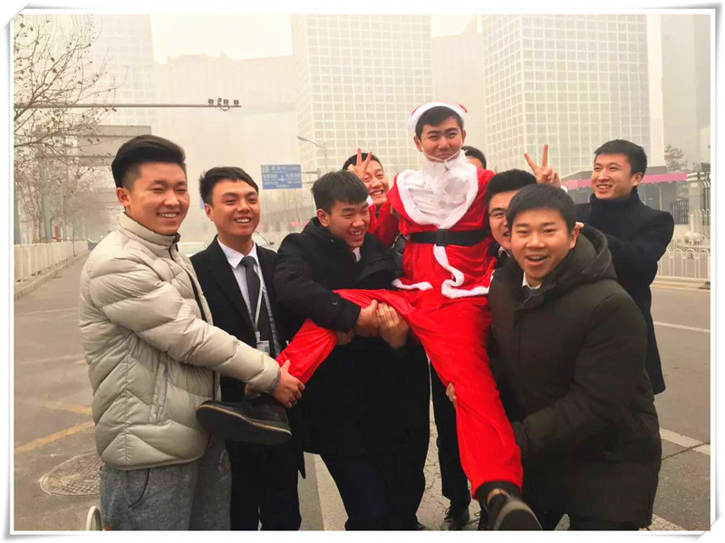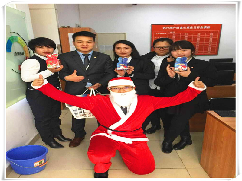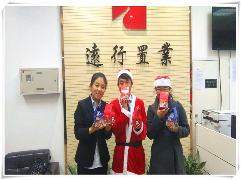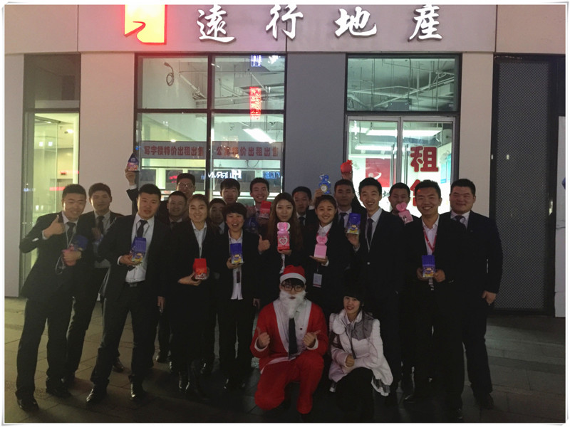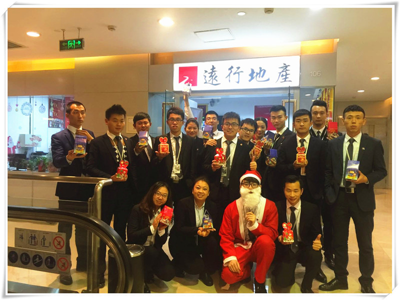 2.瞬間移動。22號下午的北京天空,霧霾還沒有散去,吹到臉上的風亦有些瑟瑟的寒冷。在北京的各大商務辦公區,每一座高樓里的人們都在忙忙碌碌地為著夢想而努力。這個時候,四位圣誕老人已經開始了一段“送驚喜”的旅程,為了將遠行的愛送到每一位遠行人的心里,圣誕老人們正悄悄奔向遠行地產各個門店。無論距離有多遠,他們只希望自己出現在門店門口的那一刻,所有的小伙伴可以露出笑容,迎接一共600多件精心包裝的圣誕平安果。