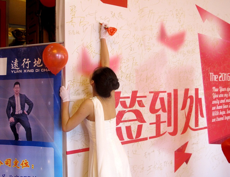 1月31日早晨,遠行年會簽到處成為整個大會場最火爆、最靚麗的地方,俊男美女齊聚,路人側(cè)目,歡聲笑語,人聲鼎沸;
