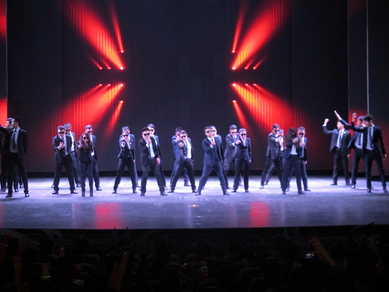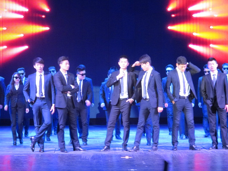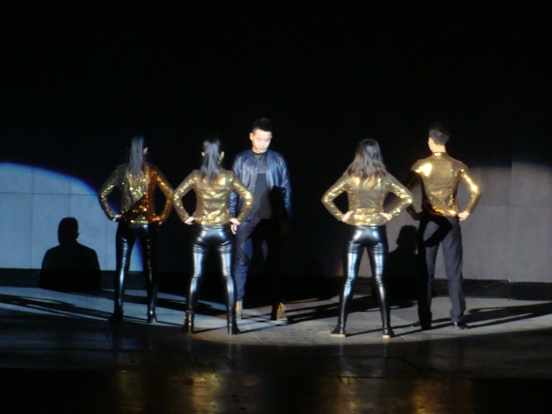 我們有開場的走秀串燒加舞蹈:他們可是在月黑風高的夜晚,在建外區(qū)域和亞運村區(qū)域跳著《社會搖》的墨鏡黑衣人,順便帶了一只“恐龍”……