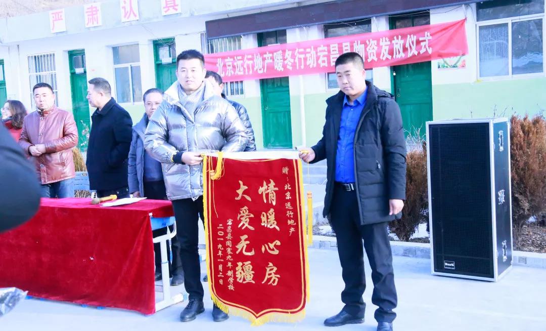 2019年1月2日上午,遠行地產暖冬行動暨宕昌縣物資發放儀式在同寨九年制學校、八力九年制等學校正式啟動。出席本次儀式的愛心人士有宕昌縣總支部民盟組委張煜、縣教育局學生資助中心主任李遇春、黃土地志愿者協會冀東升等。